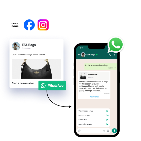 Maximiza la utilización de los anuncios de clic para WhatsApp mostrados en Facebook e Instagram. ¡Crea 3 veces más conversiones de negocios y acelera el crecimiento de ingresos!